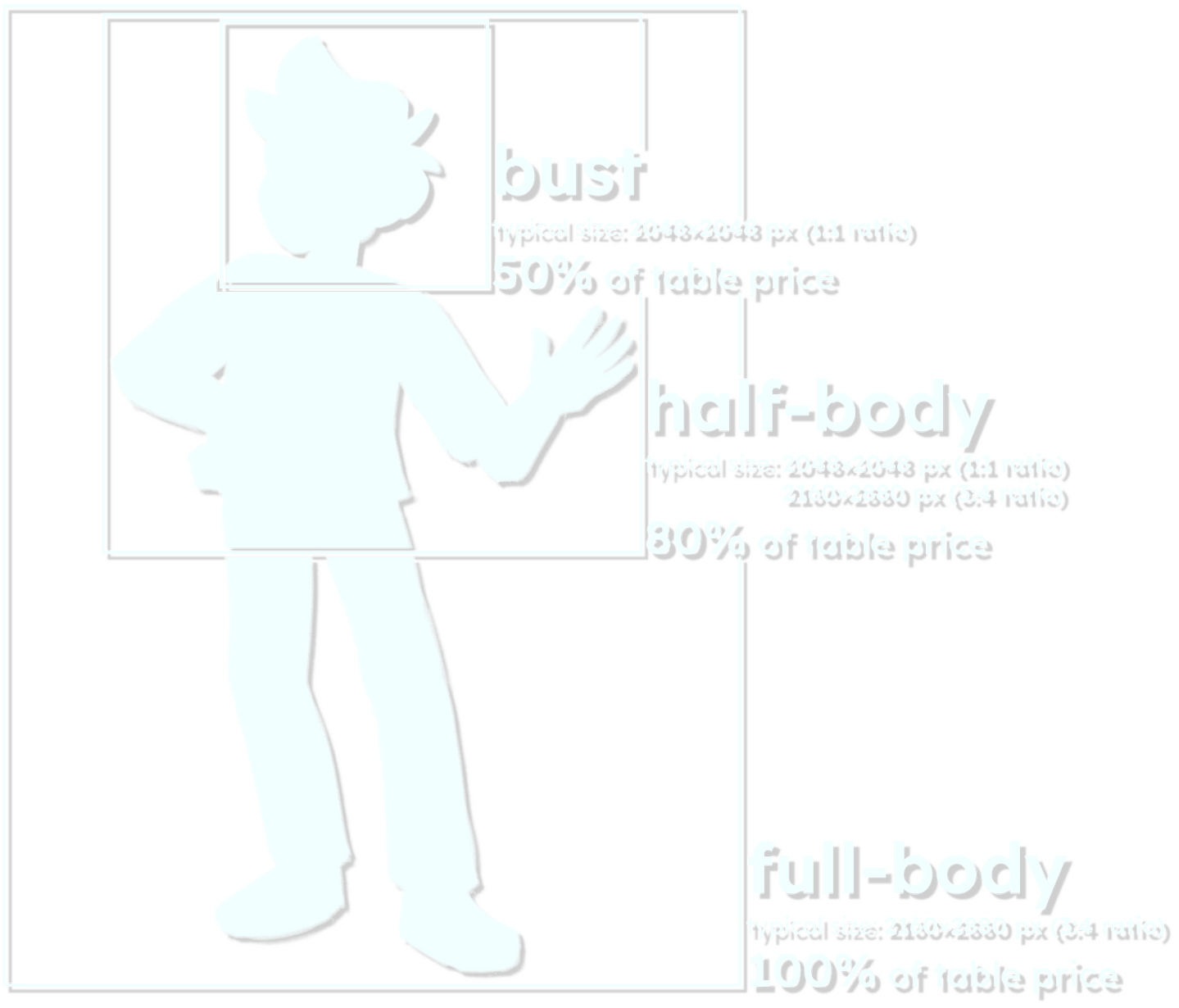 If you're interested in getting a piece of art in one of my styles, there are plenty of commission options for you to choose from. Pick what you like and send me a message. Terms of Service apply.